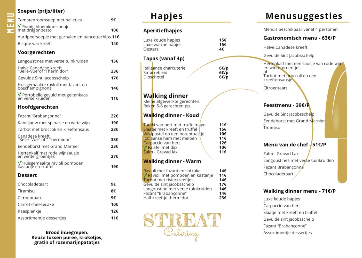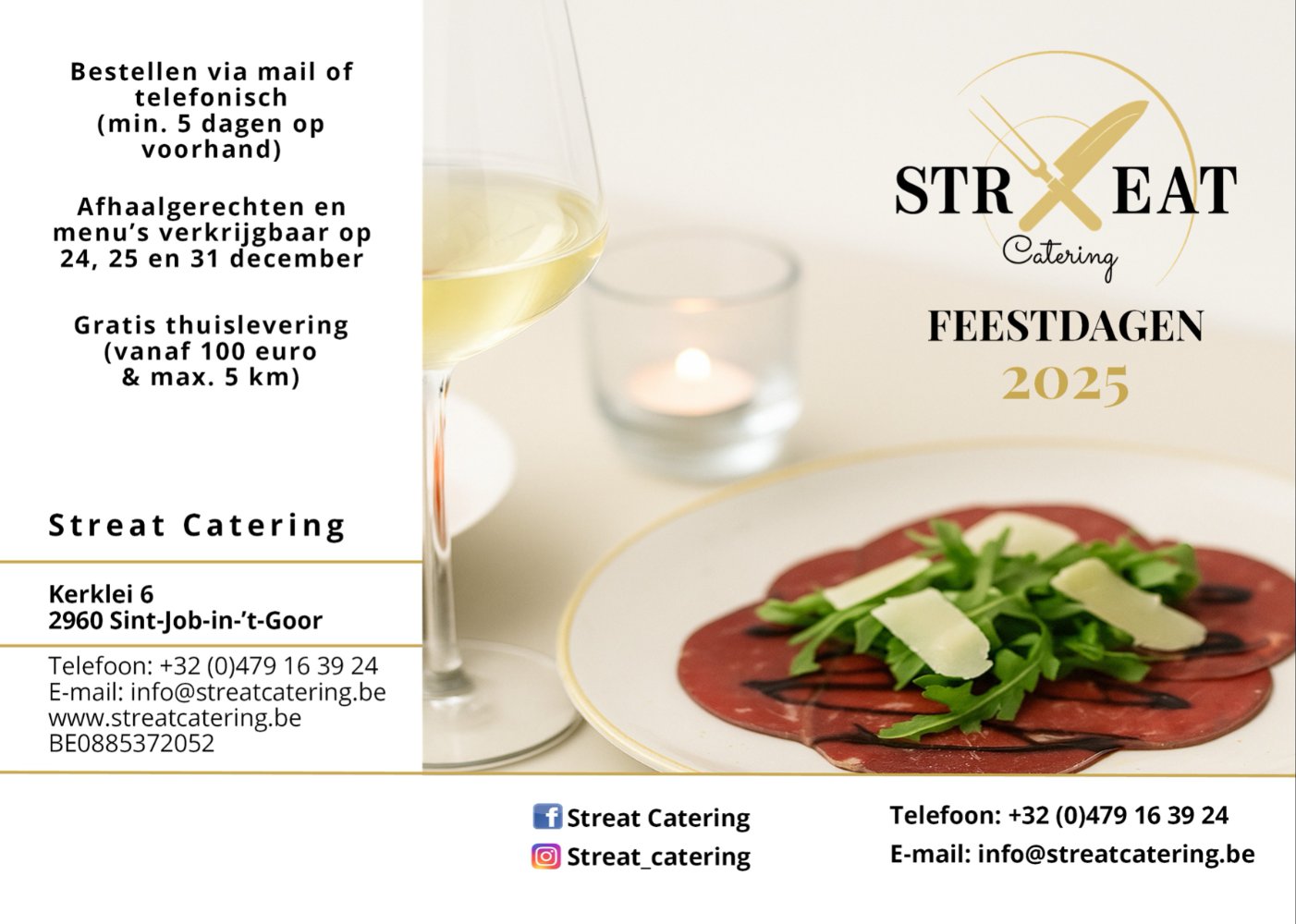 Bestellen kan via mail (info@streatcatering.be) of telefonisch (0479163924).